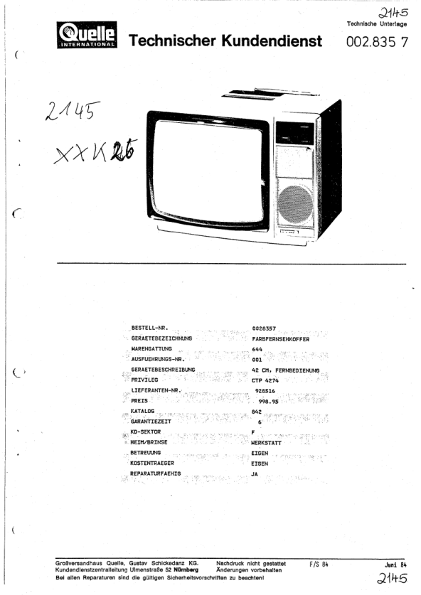 Descripción del QUELLE 002.835.7 Manual de Servicio