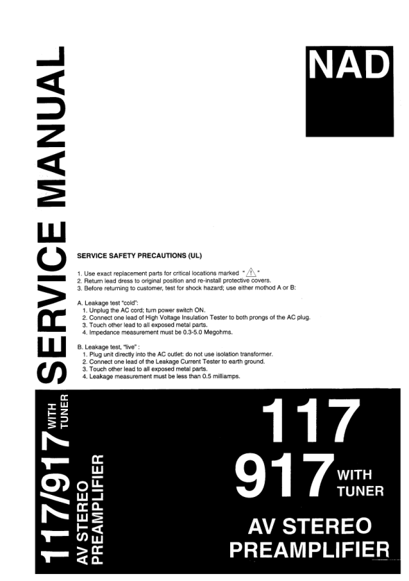 Inicio >> NAD >> 117 AV STEREO PRE-AMPLIFIERSM Manual de Servicio