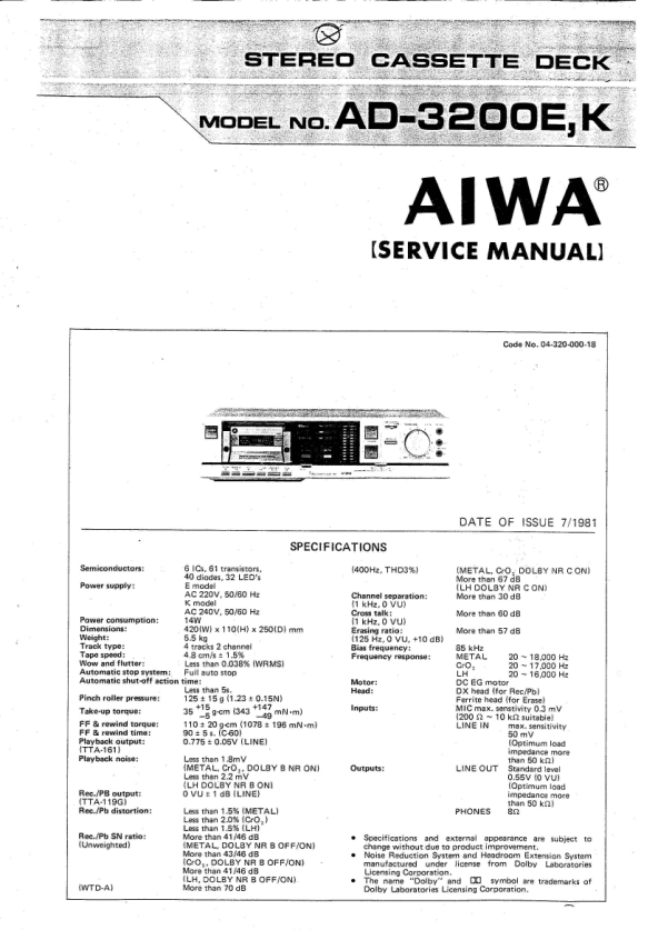 Descripción del AIWA AD3200E/K Manual de Servicio