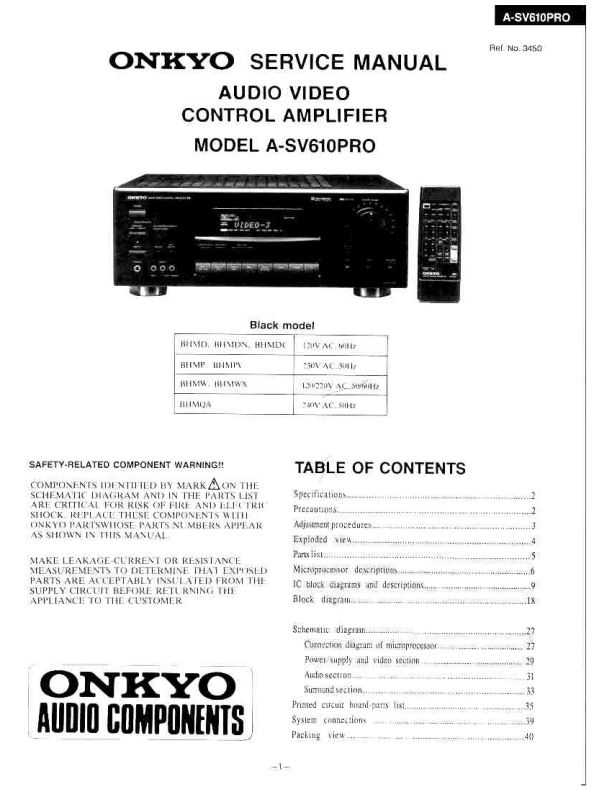 Inicio >> ONKYO >> A-SV610PRO Manual de Servicio