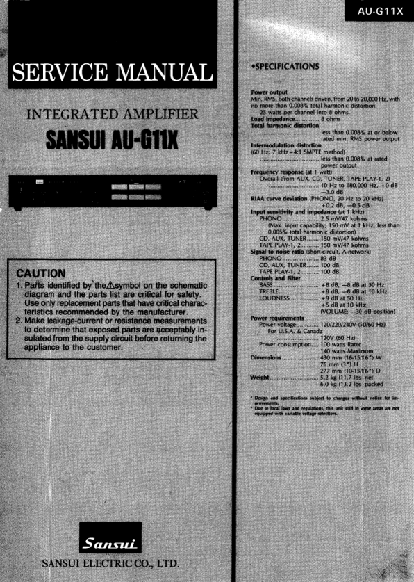 Descripción del SANSUI AUG11X Manual de Servicio