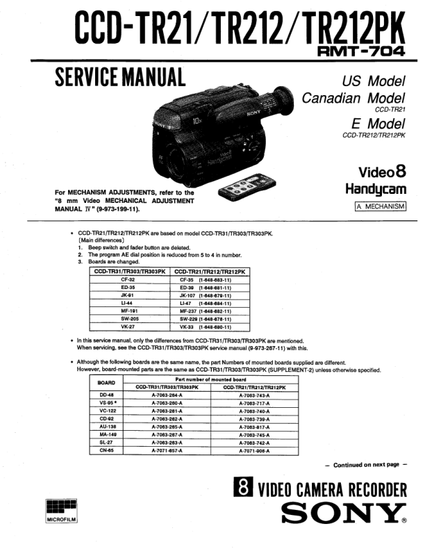 Descripción del SONY CCDTR21 Manual de Servicio