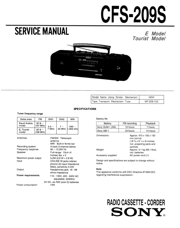 Inicio >> SONY >> CFS-209S Manual de Servicio