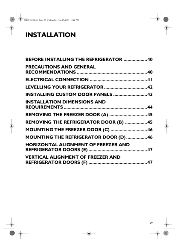 WHIRLPOOL CFS 800 W Manual de Instalación