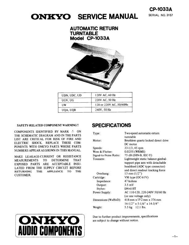 Descripción del ONKYO CP-1033A Manual de Servicio