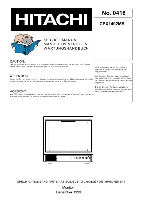 Descripción del HITACHI CPX1402MS Manual de Servicio