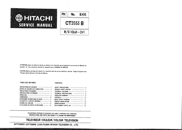 Inicio >> HITACHI >> CT2033B Manual de Servicio