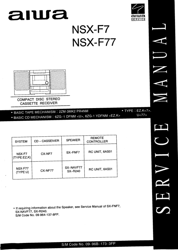 - TAPE MECHANISM PARTS LIST 1/1