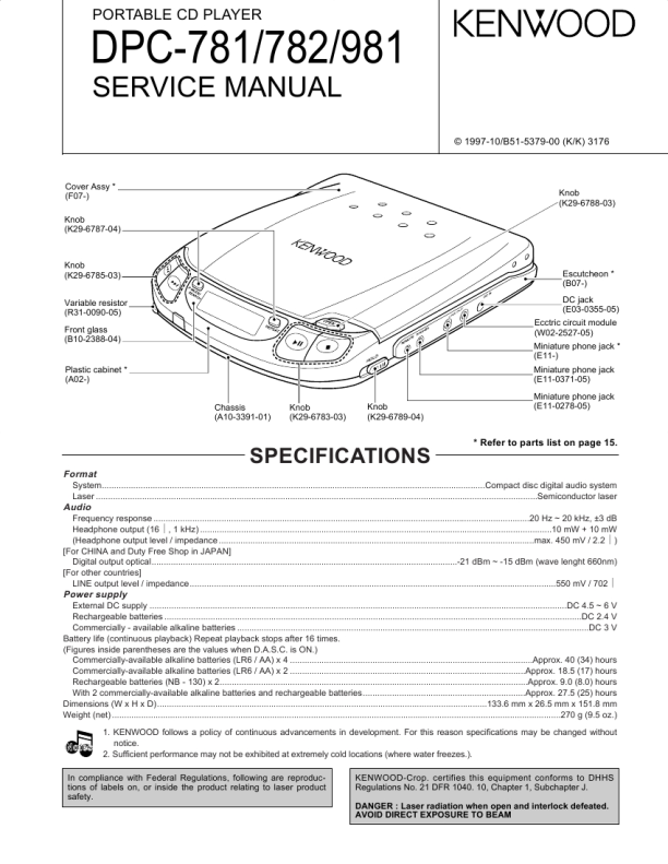 Note: Test DISC KTD-03, TCD-783 or equivalent LPF : Around 47k� + 390 pF or so. Step 1~5 are in Test Mode.
