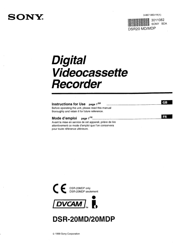 Descripción del SONY DSR-20MDP Manual de Usuario