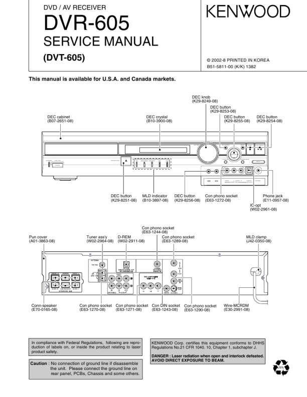 DISASSEMBLY FOR REPAIR How to open the tray if it does not come out.
