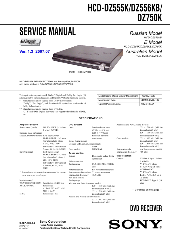 HCD-DZ555K/DZ556KB/DZ750K