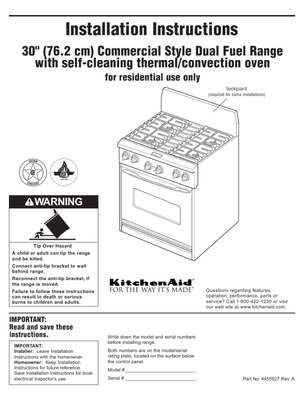 WHIRLPOOL KDRP407HSS4 Manual de Instalación