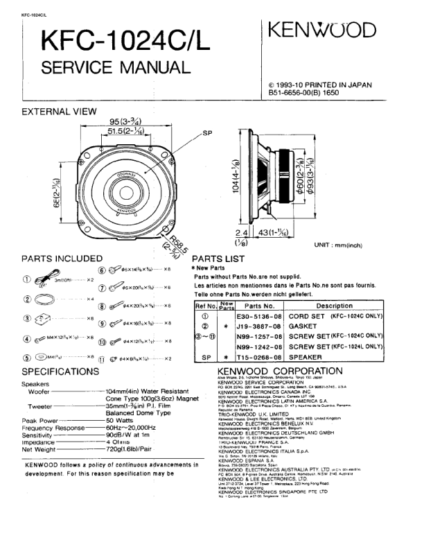 Descripción del KENWOOD KFC1024L Manual de Servicio