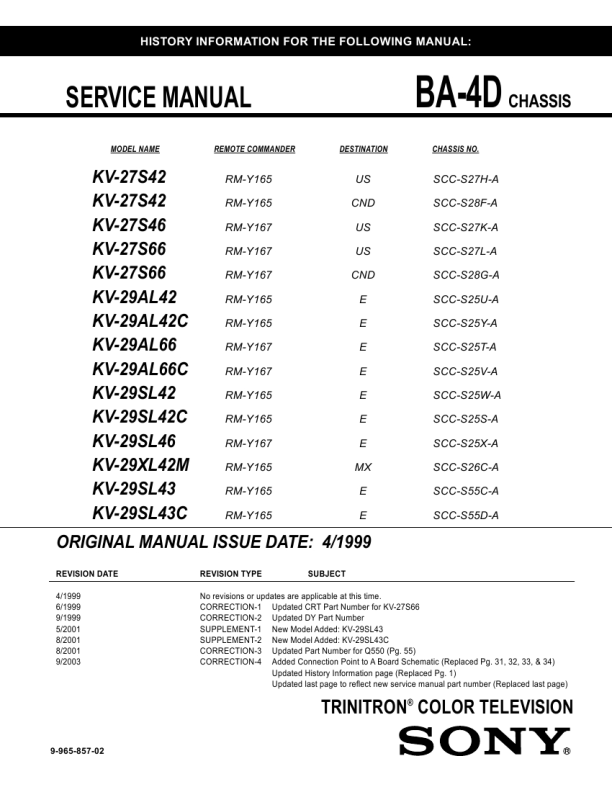 Descripción del SONY KV29SL42C Manual de Servicio
