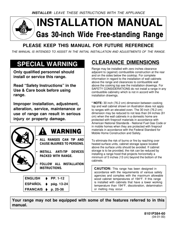 WHIRLPOOL MGR4411BDW Manual de Instalación