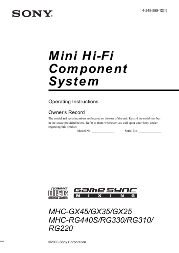 * for MHC-GX25 and MHC-RG220 (except for European and Russian models)