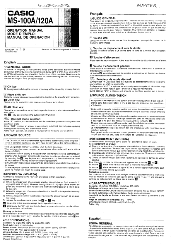 Descripción del CASIO MS100 Manual de Usuario