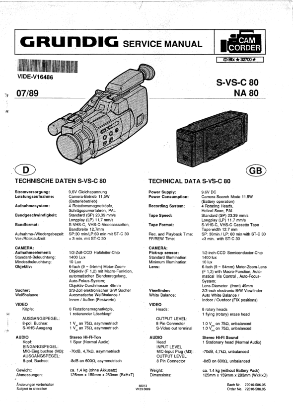 Descripción del GRUNDIG NA80 Manual de Servicio