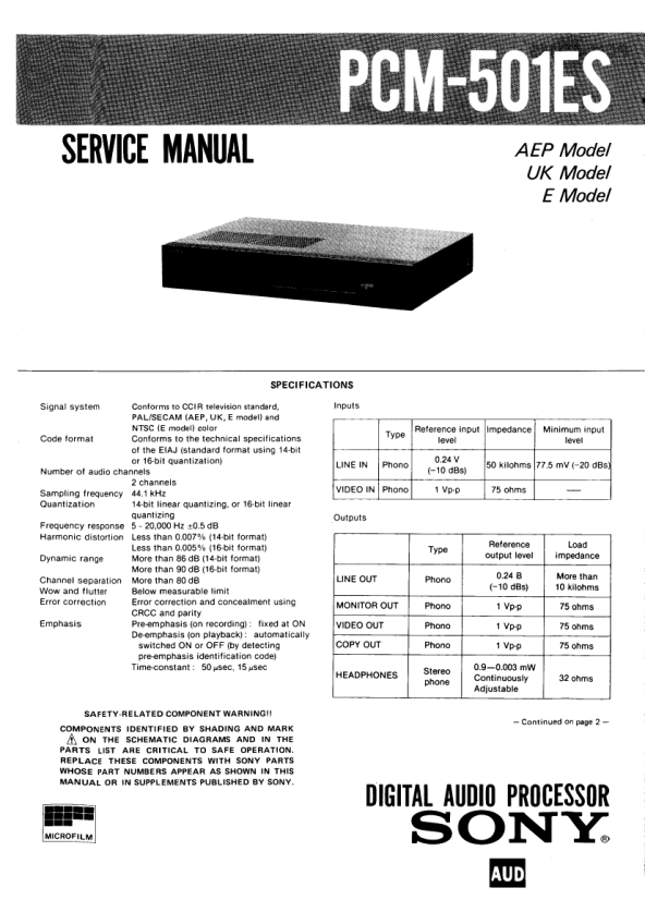 Descripción del SONY PCM501ES Manual de Servicio