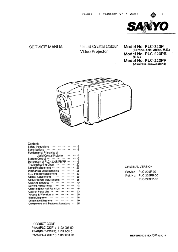 Descripción del SANYO PLC-220PB Manual de Servicio