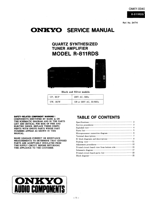 Descripción del ONKYO R-811RDS Manual de Servicio