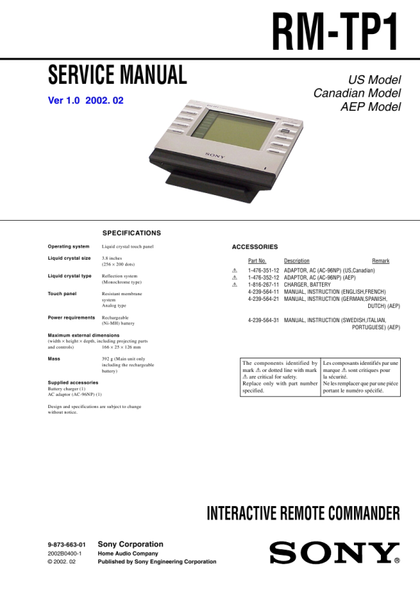 Clicking the version allows you to jump to the revised page. Also, clicking the version at the upper right on the revised page allows you to jump to the next revised page. Ver. 1.0 Date 2002. 02 Description of Revision New