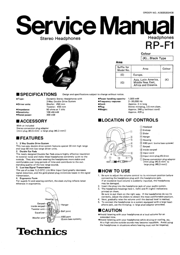 Descripción del TECHNICS RP-F1 Manual de Servicio