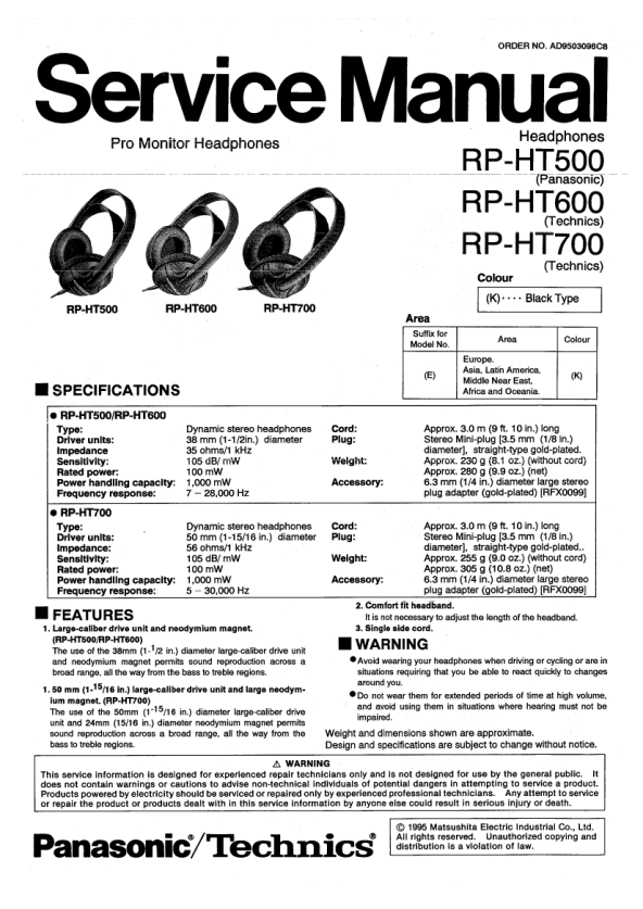 Descripción del TECHNICS RPHT600 Manual de Servicio