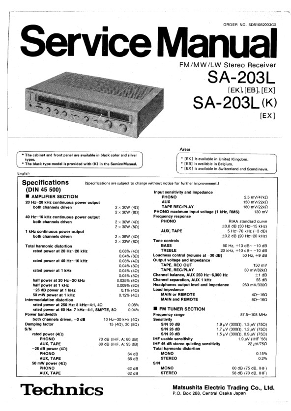 - REPLACEMENT PARTS LIST (Electrical Parts)