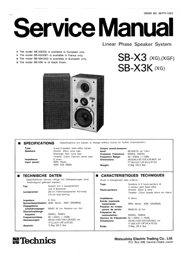 Descripción del TECHNICS SB-X3K Manual de Servicio