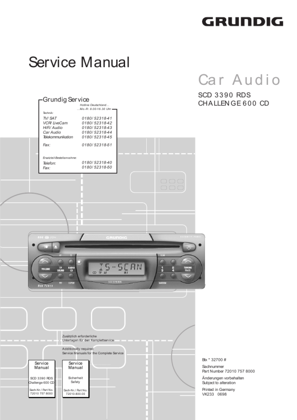 SCD 3390 RDS / Challenge 600 CD Allgemeiner Teil / General Section