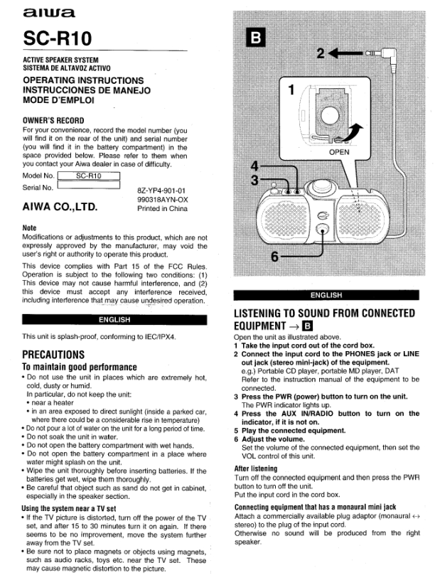 Inicio >> AIWA >> SC-R10 Manual de Usuario