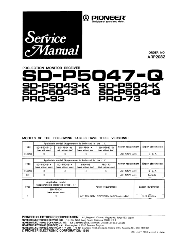 Inicio >> PIONEER >> SDP5047Q Manual de Servicio