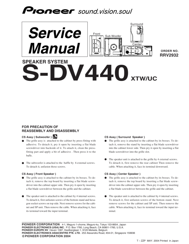 6 SPEAKER 18 PACKING 1 7 GRILLE 1 19 SCREW(M3.5�8) 8 8 ACOUSTIC ABSORBENT(DUFFEL FELT) 1 20 SCREW(M3.5�10) 4