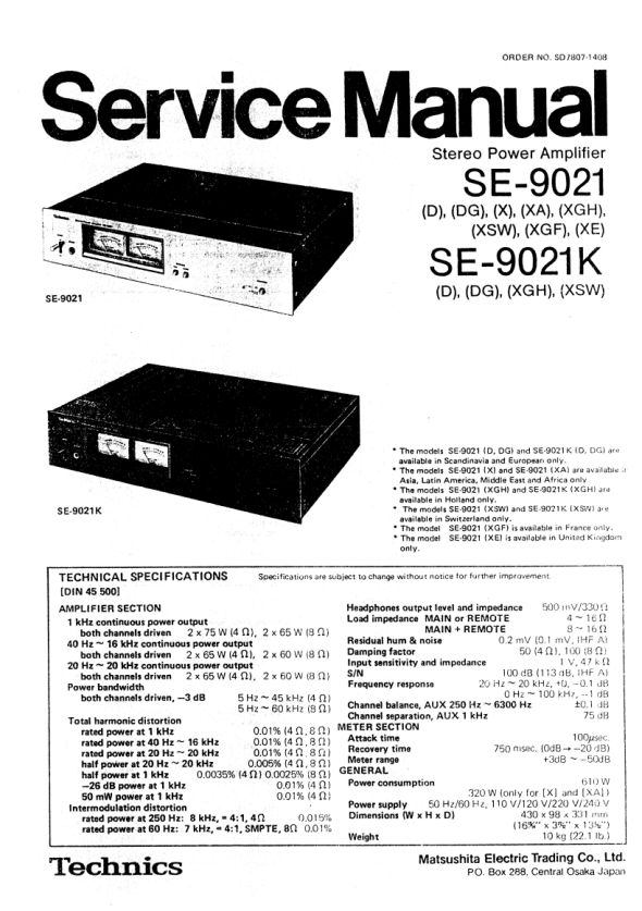 Descripción del TECHNICS SE-9021 Manual de Servicio