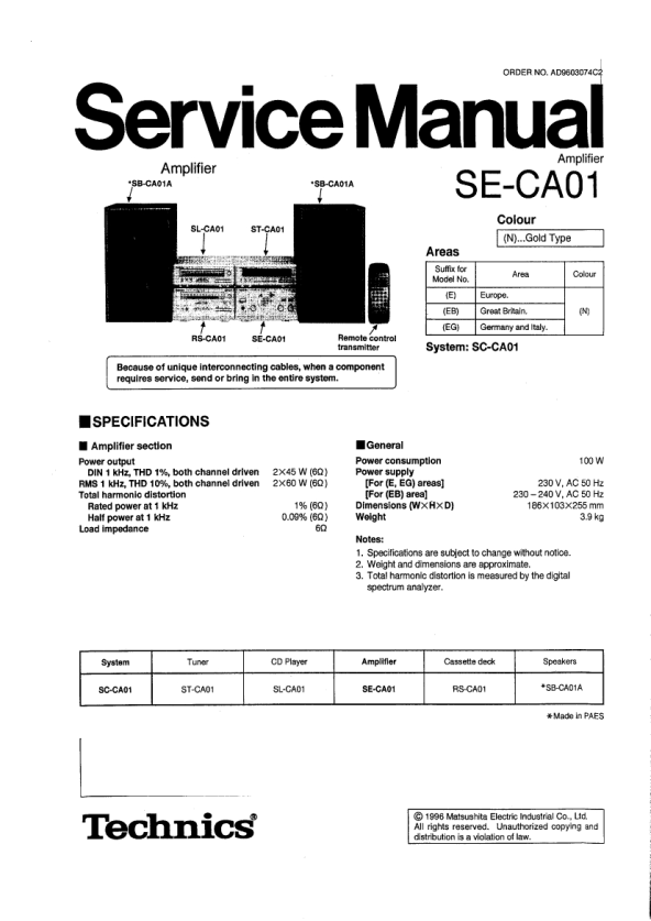 Descripción del TECHNICS SECA01 Manual de Servicio