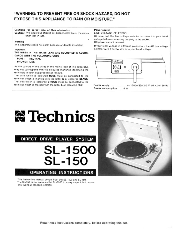 Descripción del TECHNICS SL-1500 Manual de Usuario