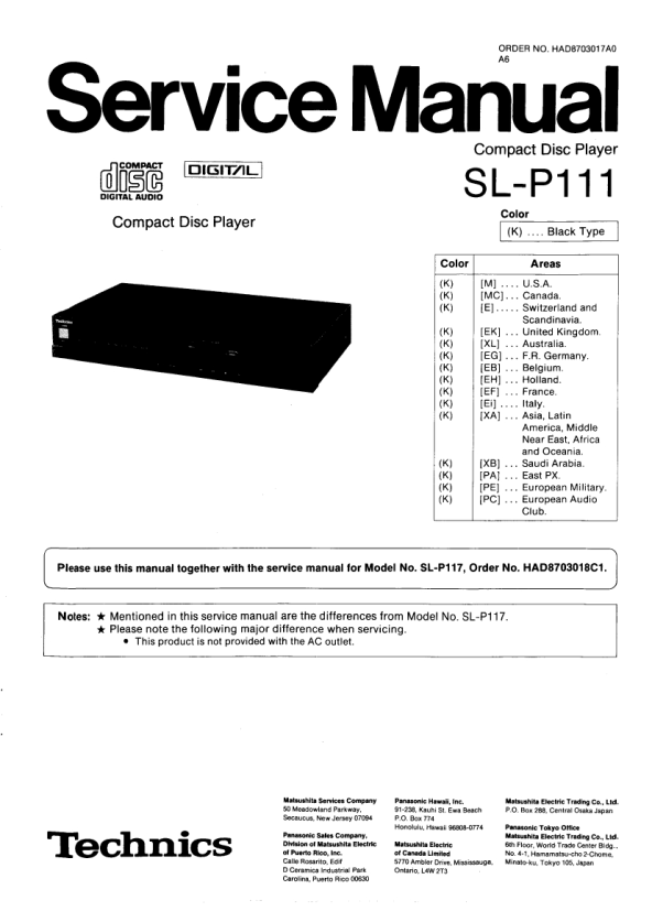 Descripción del TECHNICS SLP111 Manual de Servicio