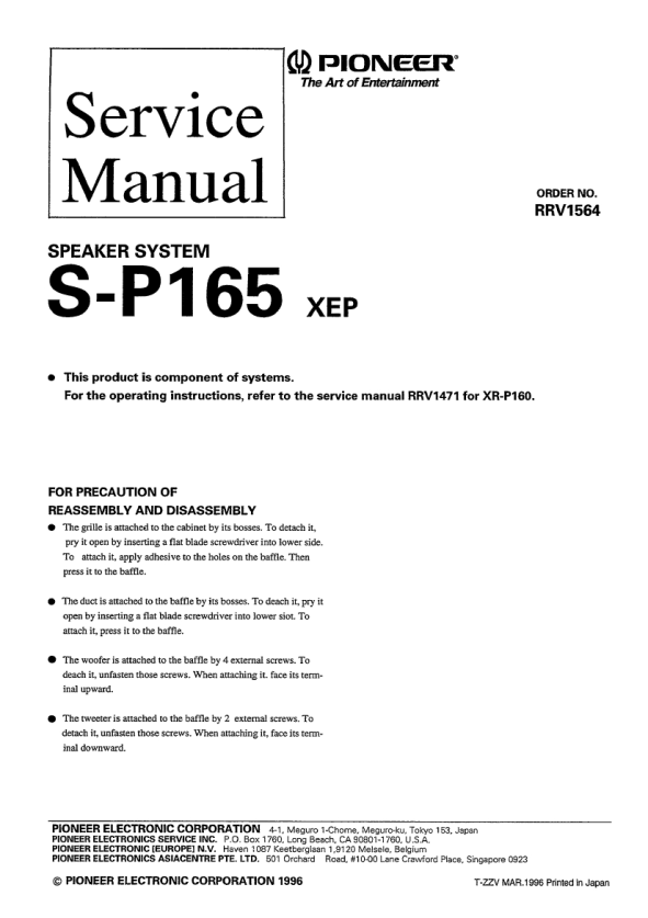 Descripción del PIONEER SP165 XEP Manual de Servicio