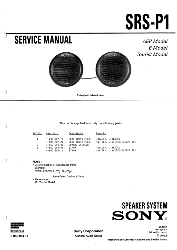 Inicio >> SONY >> SRSP1 Manual de Servicio