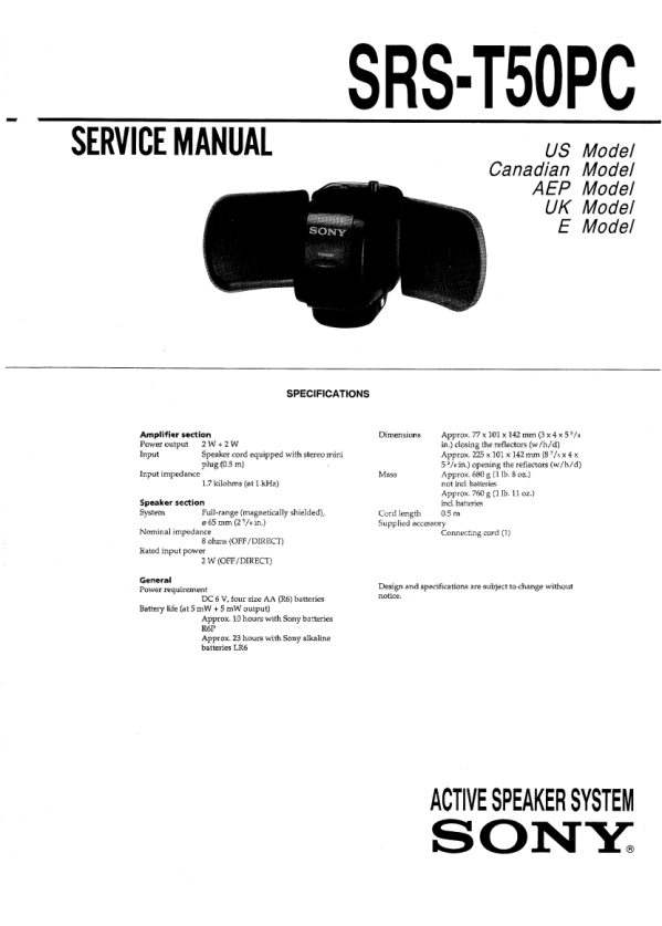 Descripción del SONY SRS-T50PC Manual de Servicio