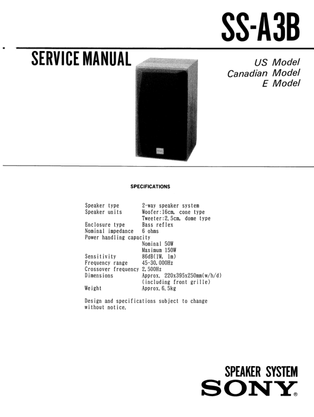 Descripción del SONY SSA3B Manual de Servicio