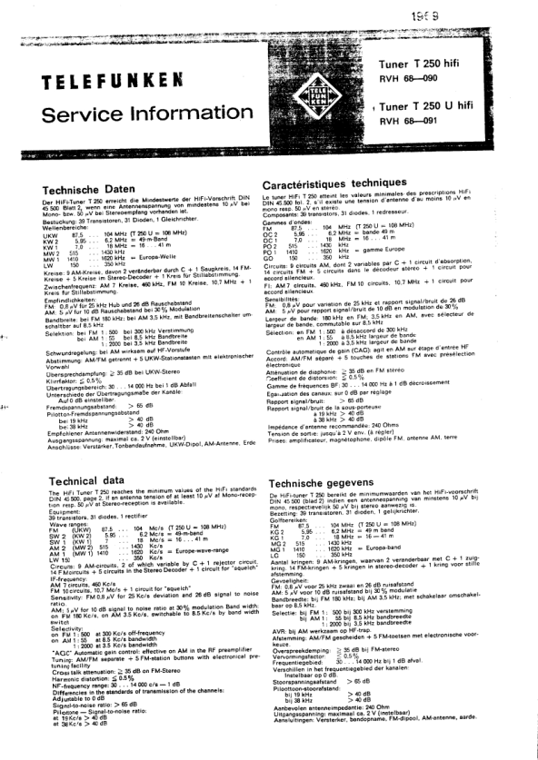 Descripción del TELEFUNKEN T250/U Manual de Servicio
