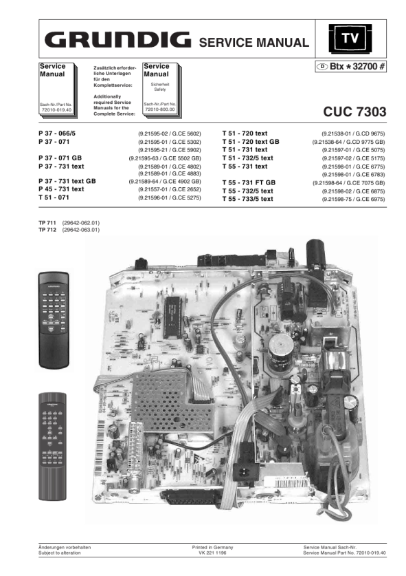 Alle nicht beschriebenen Einstellelemente sind werkseitig abgeglichen und dürfen im Servicefall nicht verstellt werden. Me�geräte: Zweikanal-Oszilloskop mit Tastkopf 10:1, Farbbildgenerator, hochohmiges Voltmeter. Kontrolle und Einstellarbeiten nach Austausch bzw. Reparatur von: Netzteil: 1. Zeilenablenkung: 2., 3. Bildröhre oder Bildrohrplatte: 2., 6. IC150: 4., 5. Tuner: 4, 5.