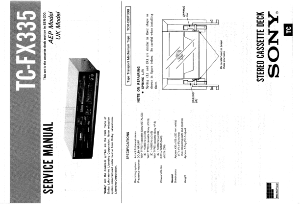 Descripción del SONY TCFX335 Manual de Servicio