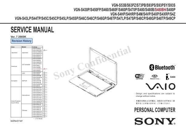 VGN-S53B/S63PZ/S73PB/S93PS/S93PSY/S93S (J) VGN-S430P/S450FP/S460/S460F/S460P/S470P/S480/S480B/S480BH/S480P (AM) VGN-S4HP/S4HRP/S4M/S4VP/S4XP/S4XRP/S4Z (EU) VGN-S43LP/S44TP/S45C/S45CP/S45LP/S45SP/S46C/S46CP/S46GP/S46TP/S47LP/S47SP/S48CP/S48GP/S48TP/S49CP (AO)