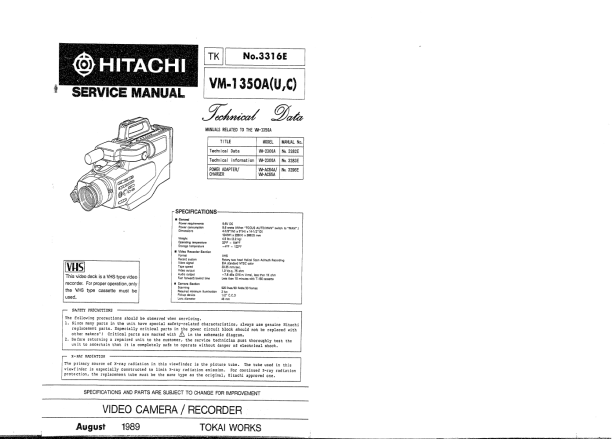 Descripción del HITACHI VM-1350A Manual de Servicio