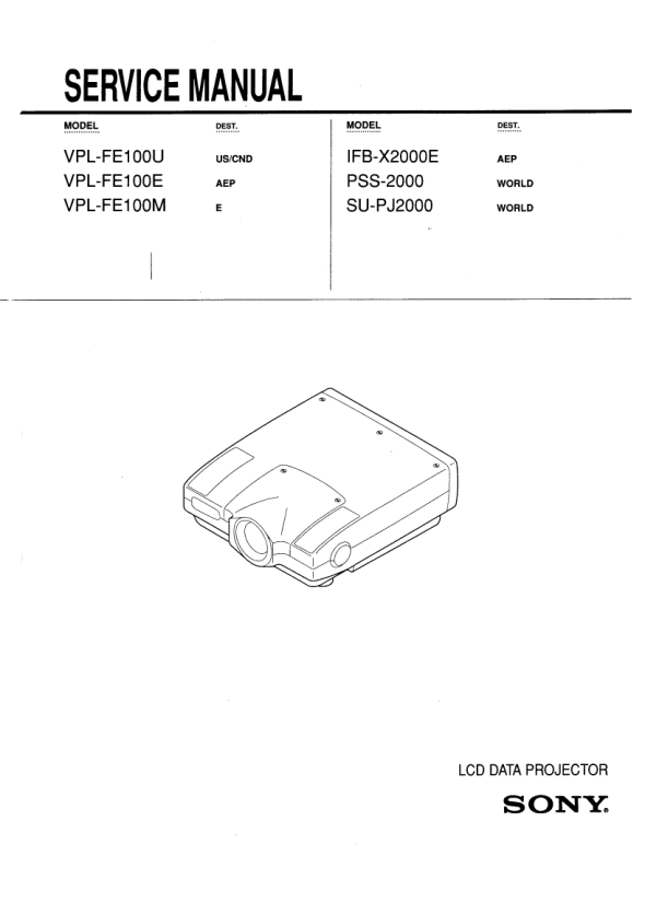 Descripción del SONY VPL-FE100U Manual de Servicio