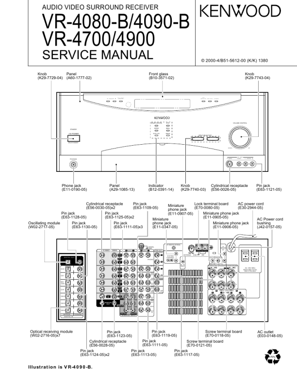 1. The rear panel can be separated by removing screws (1) on the rear panel. 2. Take the AC connector out of CN2 on the X07(C/7). 3. To separate the chassis from bottom chassis, remove the screws (2). 4. Remove CN21 and screws (3) on X13(C/5). 5. Remove screws (4 to 7). 6. The fan motor can be separated by removing screws (8) and the connector (CN12) on X07 PCB. 7. Take the PCB X25(B/9), X11(C/4)} out of X07. 8. To separate the main PCB (X07) from the bottom chassis, remove screws (0). 9. Set up the PCB as figure (-). 10. Replace the defective transistors.